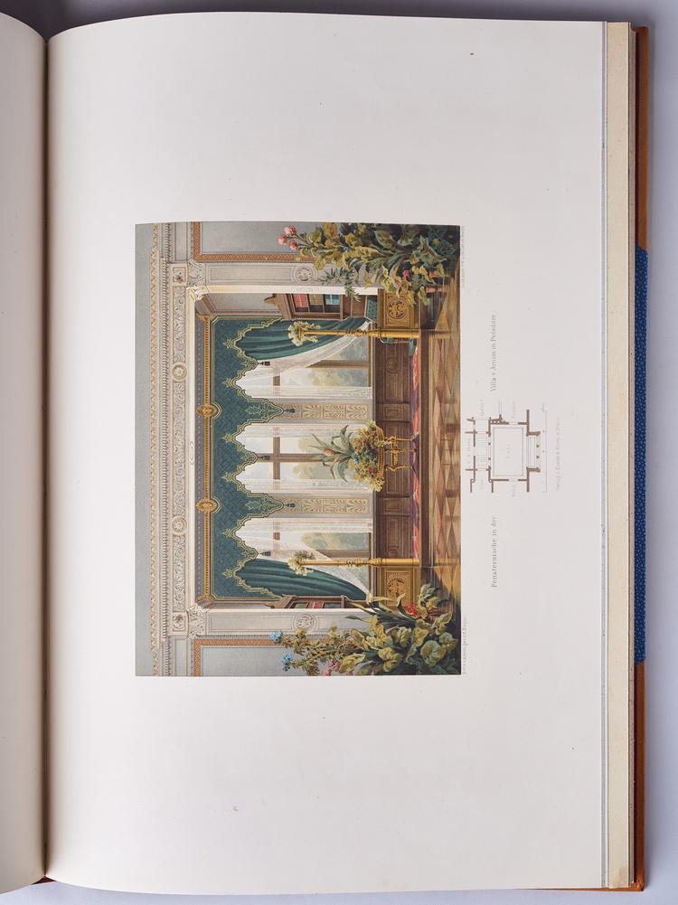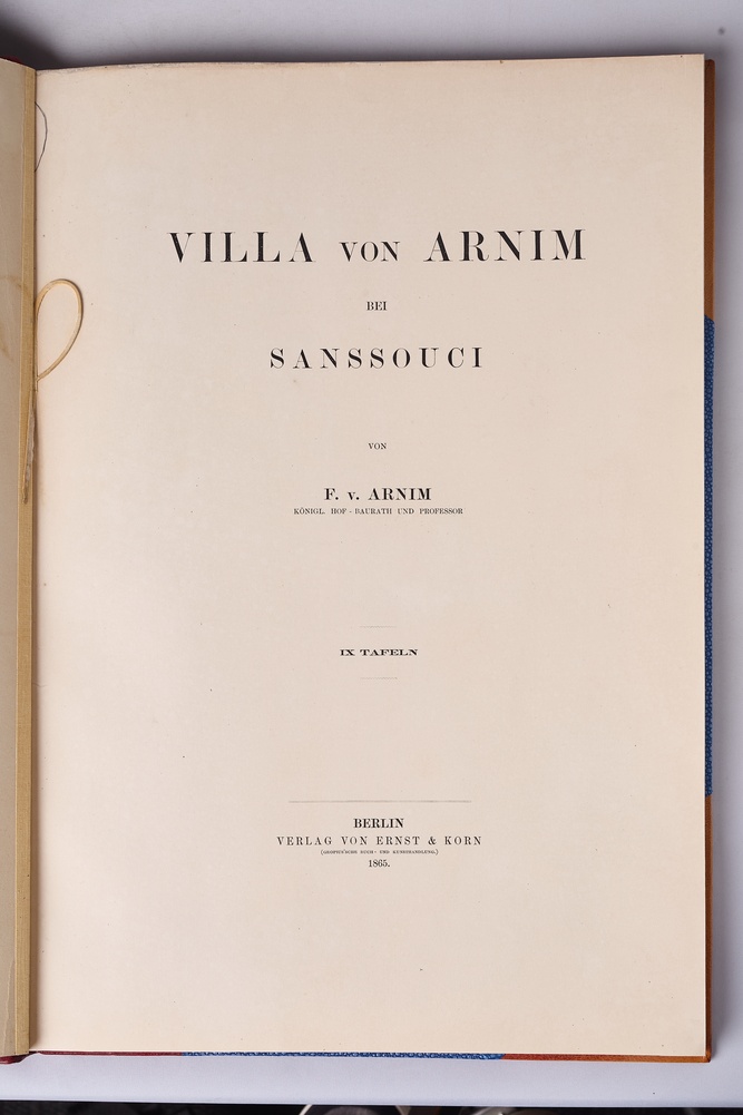 На немецком языке. 1865 и 1844 года издания. Цветные (Villa von Arnim) и черно-белые литографии на отдельных листах. В полукожаном владельческом переплете нач. ХХ век. Корешок с тиснением названия золотом.