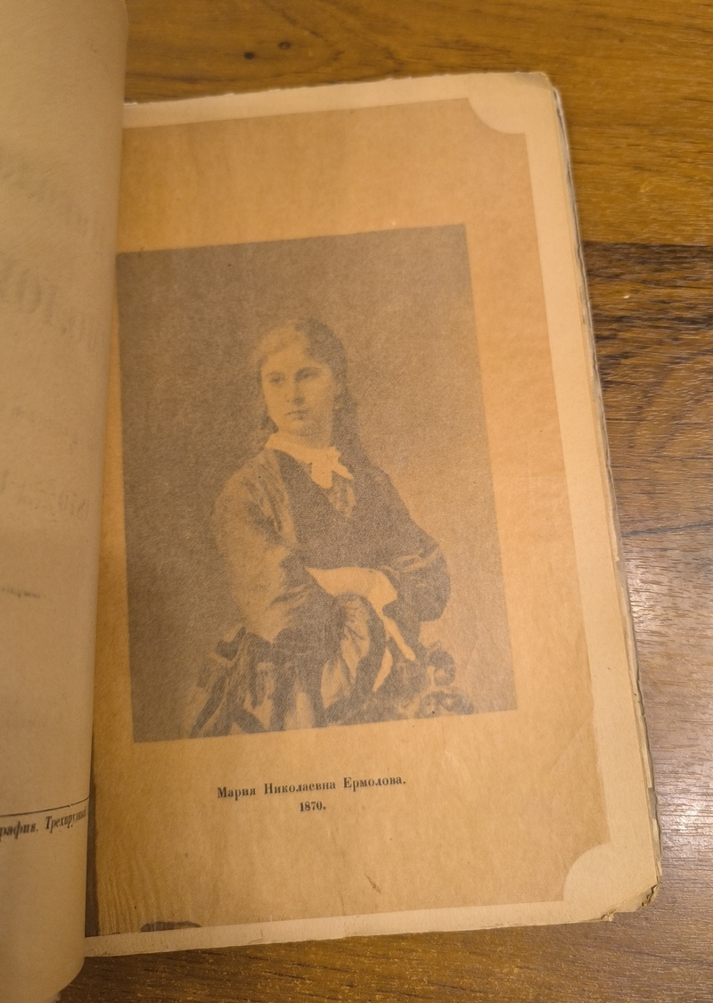 Неразрезанные страницы. С портретом Ермоловой. В бумажной печатной обложке с повреждениями по краям.