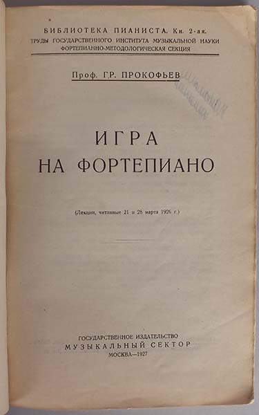 Прокофьев, Григорий Петрович (9 янв. 1884 в Козлове (ныне Мичуринск), - 3 дек. 1962, Москва) музыковед. Доктор педагогических наук (1935). В 1909 окончил Московскую консерваторию по классу фортепиано К. Н. Игумнова, С 1909 преподавал игру на фортепиано в Екатерининском училище. В 1910-1916 постоянный корреспондент *Русской музыкальной газеты* в Москве. В 1911-1924 преподаватель Московской консерватории (с 1919 профессор). Член директората Московской консерватории в первые годы революции, декан организованного по его инициативе педагогического факультета. В 1923-1943 преподавал в Музыкальном училище и Музыкальной школе-десятилетке при Московской консерватории. В 1924-1931 действительный член и председатель ф-п.-методологич. секции ГИМНа. В 1931-1941 организатор и руководитель Научно-исследовательской музыкально-педагогической лаборатории (при Академии коммунистического воспитания, Институте художественного воспитания Академии педагогических наук РСФСР, с 1938 при Московской консерватории). С 1944 старший научный сотрудник Института художественного воспитания Академии педагогических наук, с 1950 Института психологии. Вел лекционную работу.