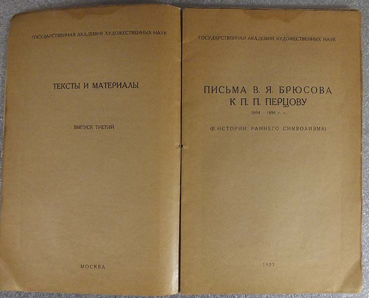 Письма В.Я Брюсова к П.П. Перцову (К истории раннего символизма)