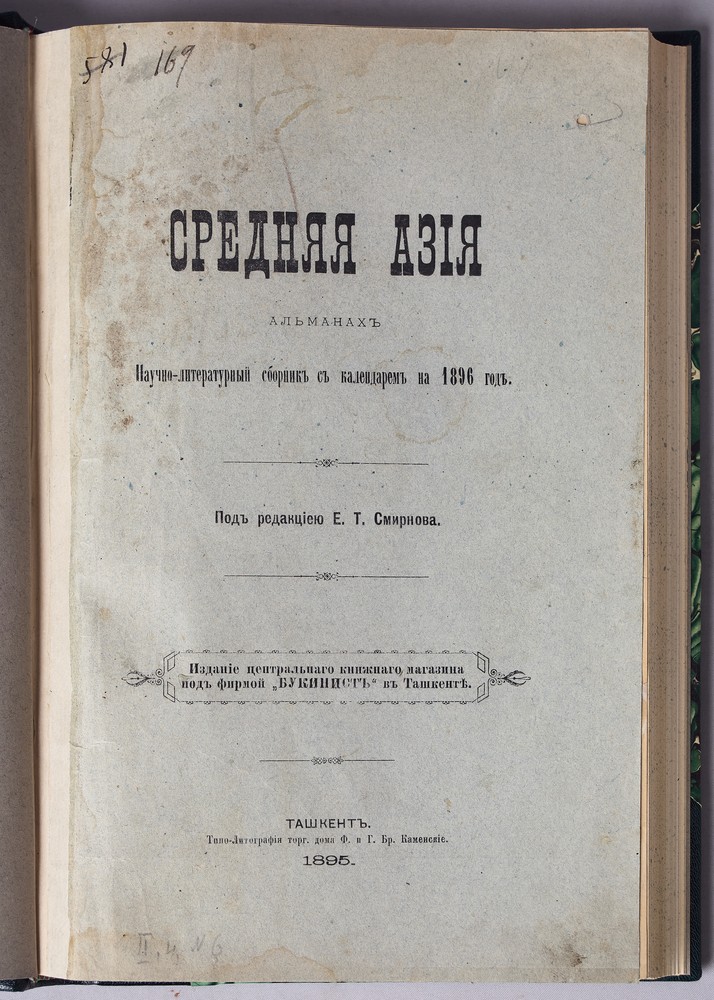Ташкент, Издание центрального книжного магазина под фирмой «Букинист» в Ташкенте; Типо-лит. Торг. Дома Ф. и Г. Братья Каменские