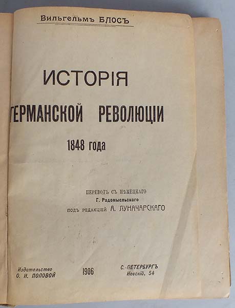 Перевод с немецкого Г.Радомысльского под редакцией Луначарского. Блок расшатан. В издателськом составном переплете. Тканевый корешок. Картонные крышки с небольшими повреждениями.