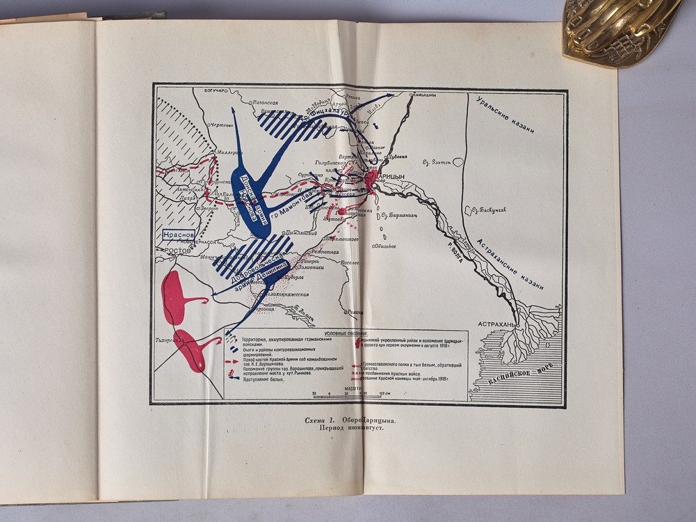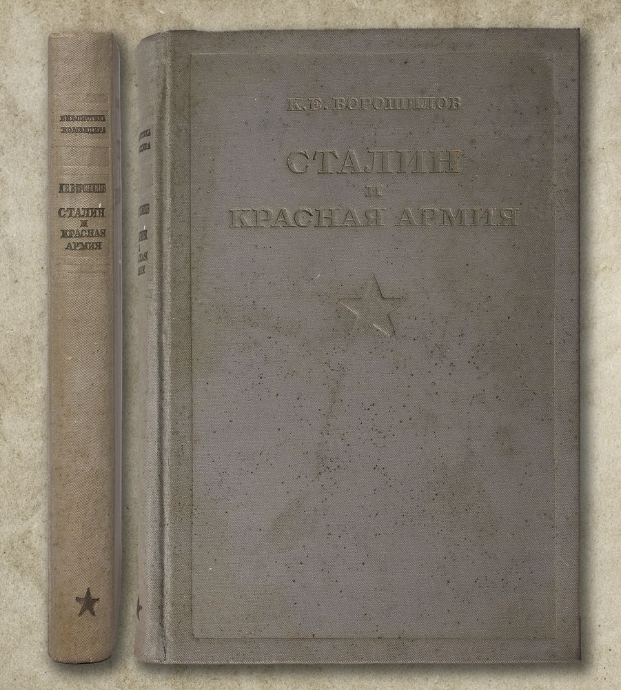 Серия "Библиотека командира". С портретами Сталина и Ворошилова. С приложениями: шестью раскладывающимися картами. На титульном листе владельческий росчерк. Небольшой переком блока, проржавевшие от времени срепки. В издательском коленкоровом переплете.