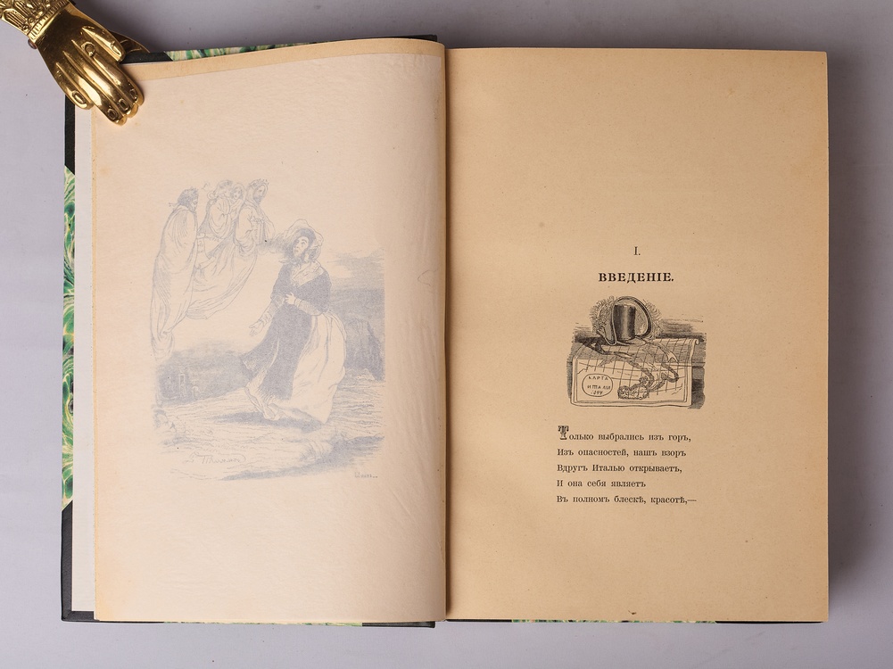 С рисунками В.Ф.Тимма. Иллюстрации помещены на отдельные листы, защищенные калькой. В полукожаных заказных владельческих переплетах. Корешки с тиснением названия и орнаментальных деталей золотом. Кожаные уголки. Крышки оклеены бумагой "павлиний глаз". Библиография - Обольянинов №1677.