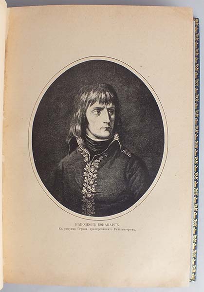 До 1917 года. С рисунками, портретами, снимками с картин, гравюр и пр., и пр. На титульном листе - владельческий росчерк, временные пятна. В цельнокожаном владельческом переплете. Бинтовой корешок с тиснением названия декоративного рисунка золотом. По верхней крышке тиснение золотом орнаментальной рамки, медальона и названия книги. Тройной узорный обрез. Форзацы оклеены мраморной бумагой и декорированы золототисненным бордюром.