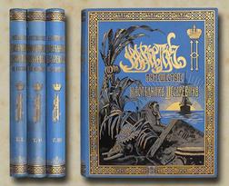 Иллюстрировал Н.Каразин. В первом и во втором томах имеются печатные владельческие экслибрисы с зачеркнутой фамилией. На титульных листах и 17 страницах этих томов проставлены цифры (экземпляр не библиотечный). В издательском художественно-оформленном коленкоровом переплете. По корешку и крышкам тиснение красками и золотом орнаментальных рамок, вензеля Императора Николая II. Тройной золотой обрез. Переплеты двух первых томов имеют потертости. Переплет III тома - в очень хорошем состоянии.