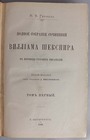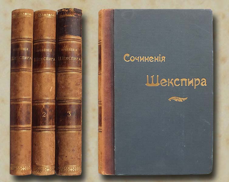 Пятое издание, под редакцией Д.Михаловского. Биографический очерк П. Н. Полевого. С гравированным портретом Шекспира. В издательских полукожаных переплетах. Корешки с тиснением названия золотом. Коленкоровые крышки т.ж. с тиснем названия золотом. Первый том имеет реставрацию (аккуратно проклеен бумагой). На корешке третьего тома небольшое повреждение в верхней части. Переплеты имеют небольшие временные потертости.