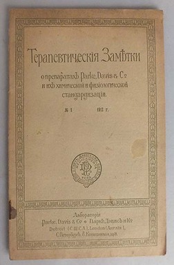 Терапевтические заметки о препаратах Parke, Davis&C и их химической и физиологической стандартизации. №1 1912 год