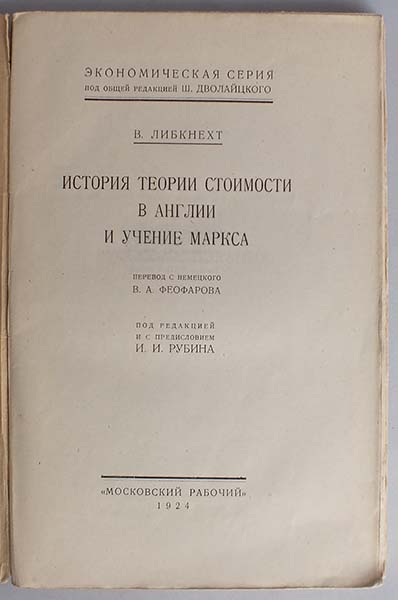 "Экономическая серия". Перевод с немецкого В. Феофарова. В бумажной издательской печатной обложке.