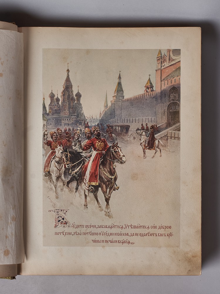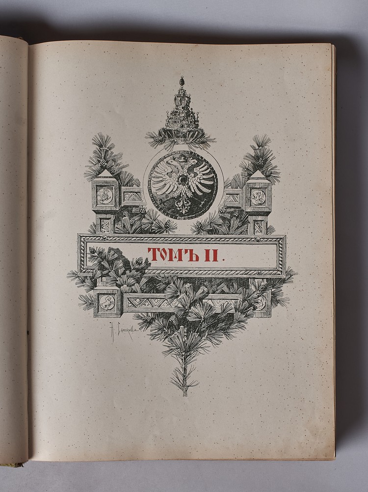 Издание иллюстрировано художниками: Васнецовым, Лебедевым, Репиным, Рубо, Самокишем и др. С иллюстрациями, картами в тексте. 40 хромолитографированных иллюстраций на отдельных листах. На страницах имеются временные пятна. В издательском полукожаном переплете с временными потертостями, пятнами. Кожаный корешок с многоцветным тиснением орнамента и названия книги. Крышки светло-зеленого коленкора. На верхней крышке изображения двуглавого императорского орла и Георгия Победоносца и вязь. - названия книги. Иллюстрированные форзацы с двуглавым орлом. Тройной золотой обрез.