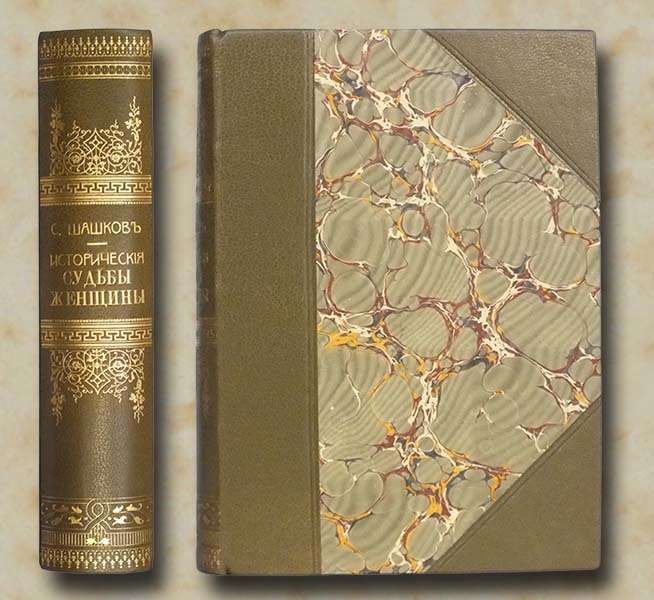 На титульном листе владельческая запись орешковыми чернилами. В полукожаном заказном владельческом переплете с сохранением внутри издательской иллюстрированной обложки. Корешок с тиснением названия и орнамента золотом. Кожаные уголки. Крышки оклеены мраморной бумагой.