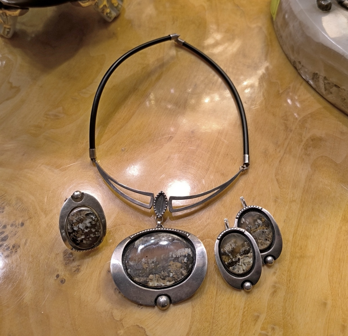 Россия. Нач. 2000-х гг. Авторская работа. Серебро (без клейма), моховой агат. Камень на подвесе имеет двухсторонний рисунок.