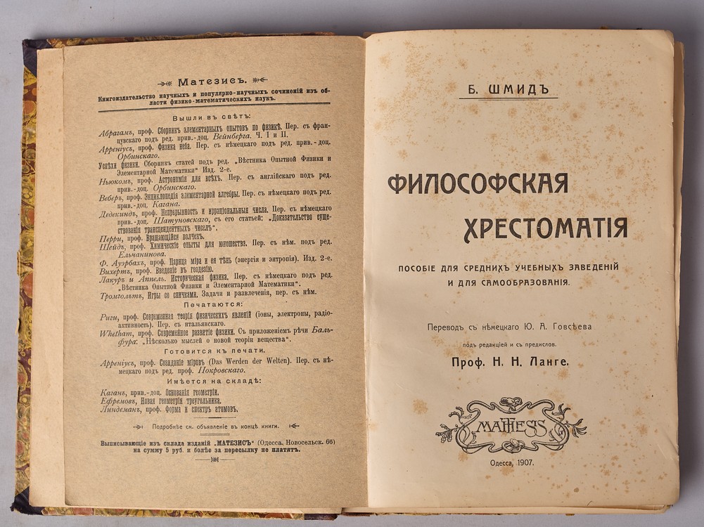 Перевод с немецкого Ю.А. Говсеева. На страницах временные пятна, встречаются подчеркивания красным карандашом в тексте. Блок расшатан, выпадающие страницы, но полный комплект страниц. Во владельческом полукожаном переплете времени издания. Переплет с потертостями.