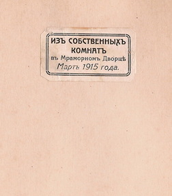 Экслибрис "Из собственных комнат в Мраморном Дворце. Март 1915 года"