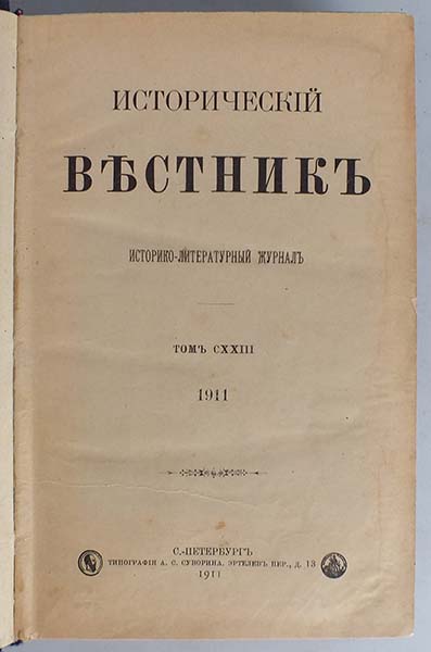 Исторический вестник. Историко-литературный журнал. Том СXXIII. 1911 год