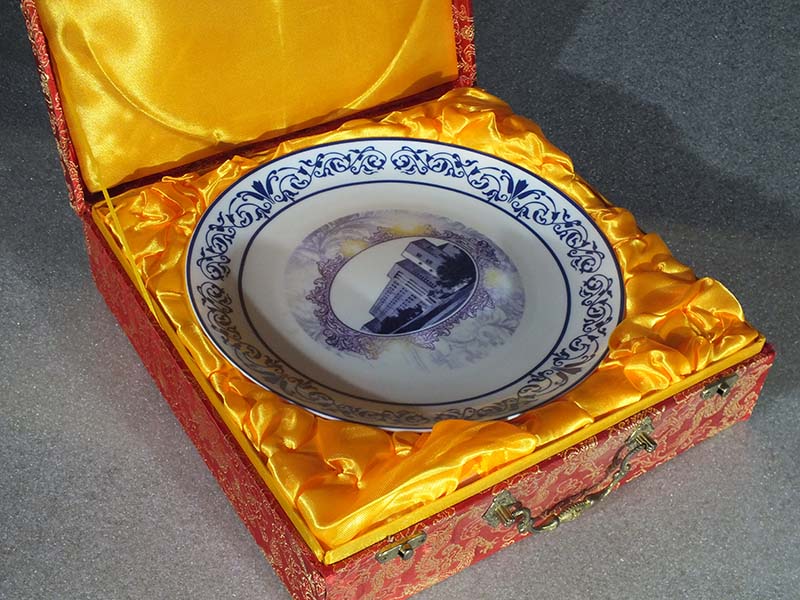 Китай. 1970-80-ее годы. Фарфор, деколь. В фабричной коробке, затянутой шелком и выложенной внутри шелком. Имеется подставка для размещения.