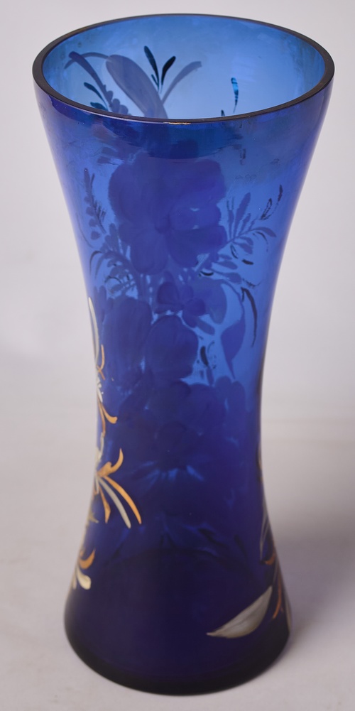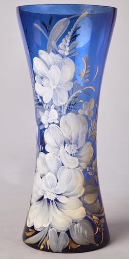 Ваза синего стекла с белыми цветами