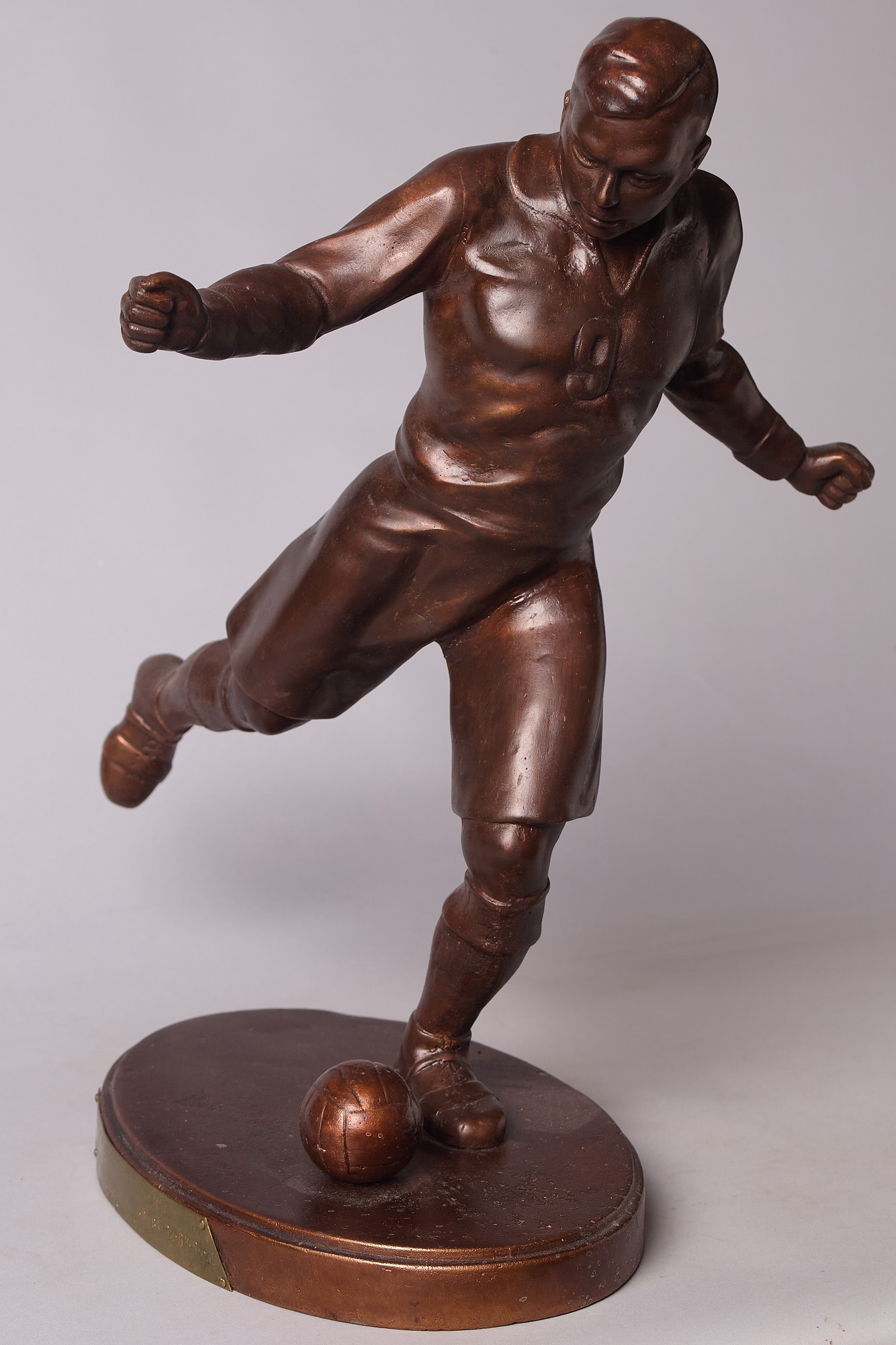 СССР. Нач. 1950-хх гг. Сплав металла, тонирование. По модели 1926 года скульптора Елены Александровны Янсон-Манизер. Имеется памятная табличка от 1951 года.