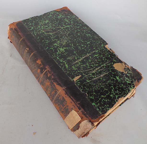 Титульный лист с пометой "Совершенно секретно". На титульном листе вытертый штамп советской библиотеки. В полукожаном переплете времени издания. Корешок с повреждениями и отходит от блока. Так же повреждение на верхней крышке.