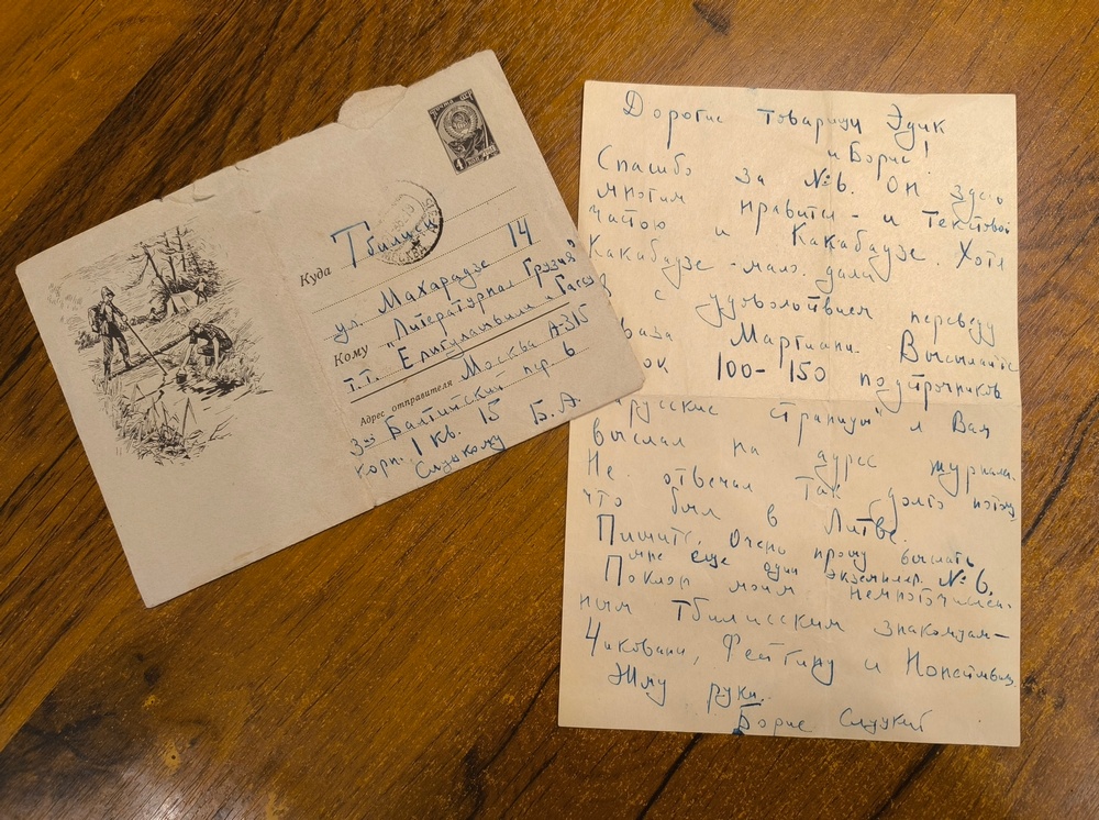 Письио советского поэта и переводчика Б.А. Слуцкого адресовано в редакцию газеты "Литературная Грузия". Конверт датирован 25.08.1962 годом.