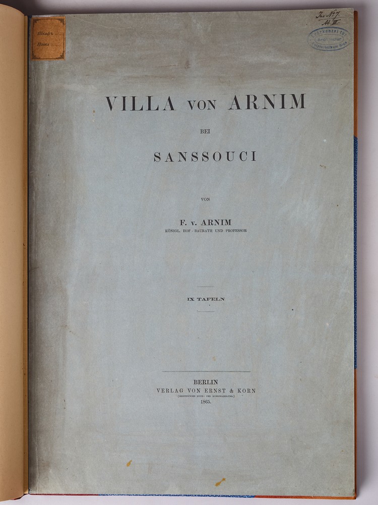 На немецком языке. 1865 и 1844 года издания. Цветные (Villa von Arnim) и черно-белые литографии на отдельных листах. В полукожаном владельческом переплете нач. ХХ век. Корешок с тиснением названия золотом.