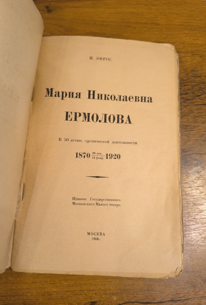 Неразрезанные страницы. С портретом Ермоловой. В бумажной печатной обложке с повреждениями по краям.