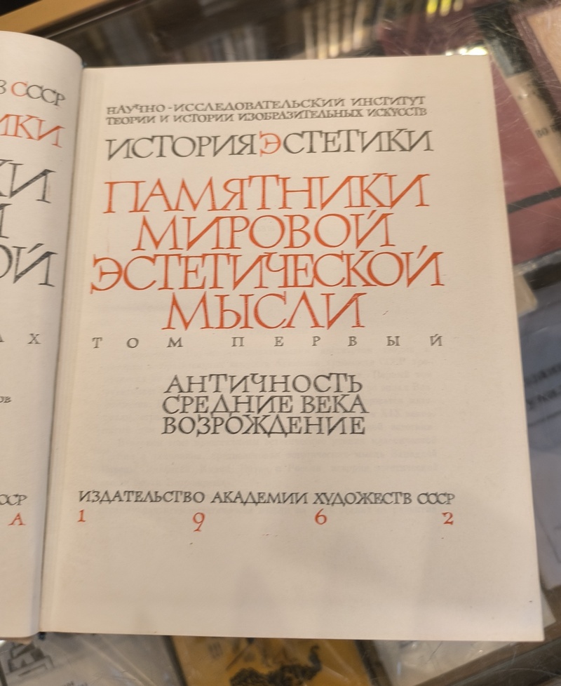 Первый том охватывает развитие эстетической мысли от древности до эпохи Возрождения.