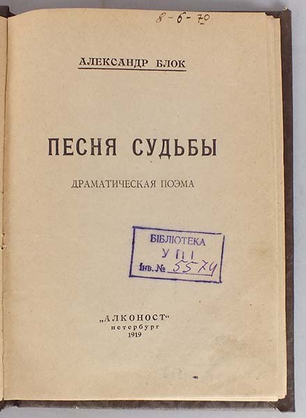 Прижизненное издание. Тираж 7.200 экз. С сохраненим художественной иллюстрированной издательской обложке, работы художника А. Головина, в коленкоровом глухом владельческом переплете. Печати советских библиотек. На страницах небольшие следы увлажнения. Трещина по блоку.