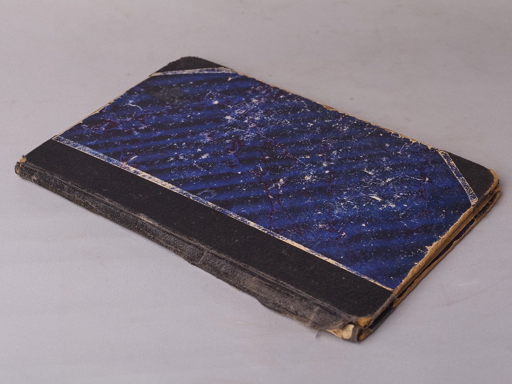 На титульном листе владельческий росчерк. В глухом составном переплете. Коленкоровый корешок с повреждением. Картонные крышки