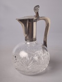 Россия. Кон. XIX - нач. ХХ века. Хрусталь. Горлышко и крышка - серебро 84 пробы, "П.А." - клемо мастерской. Внутри - белесые следы от воды. Небольшая внешняя царапина по тулову.