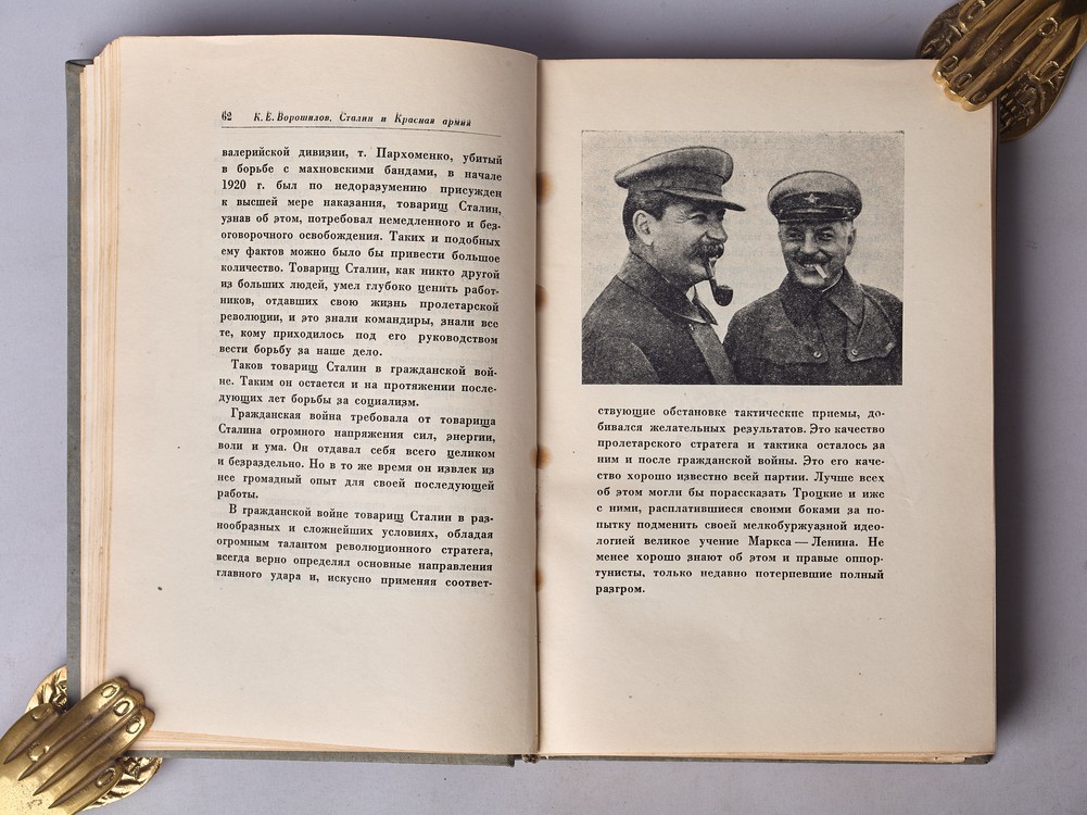 Серия "Библиотека командира". С портретами Сталина и Ворошилова. С приложениями: шестью раскладывающимися картами. На титульном листе владельческий росчерк. Небольшой переком блока, проржавевшие от времени срепки. В издательском коленкоровом переплете.