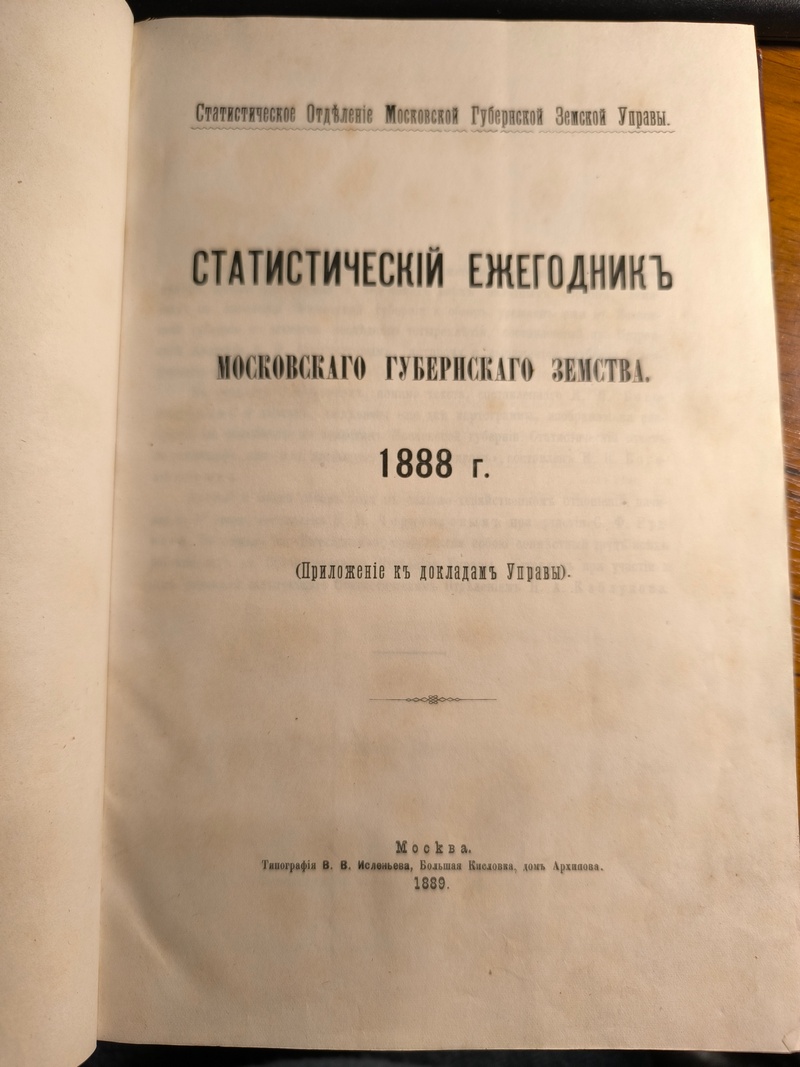 Статистический ежегодник Московского губернского земства. 1888 г. Приложение к докладам Управы