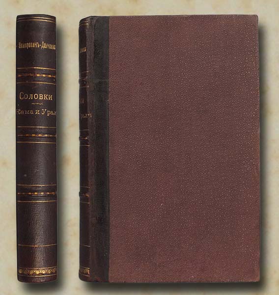 Две книги в одном полукожаном владельческом переплете времени издания. Бинтовой корешок с тиснением названия золотом. Небольшие потертости.