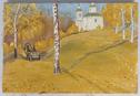 Россия. Середина XIX века. Доска, живопись, золочение. Имеются повреждения красочного слоя, следы от "рассошейся" деревянной доски. В нижней части иконы несколько значительных отслоений краски. В левом углу к доске приклеена литографированная карточка с изображением Сергия Радонежского (закрыт од из праздников). В старом простом деревянном киоте. Киот со стеклом.