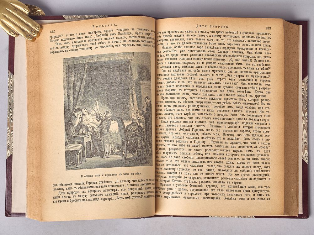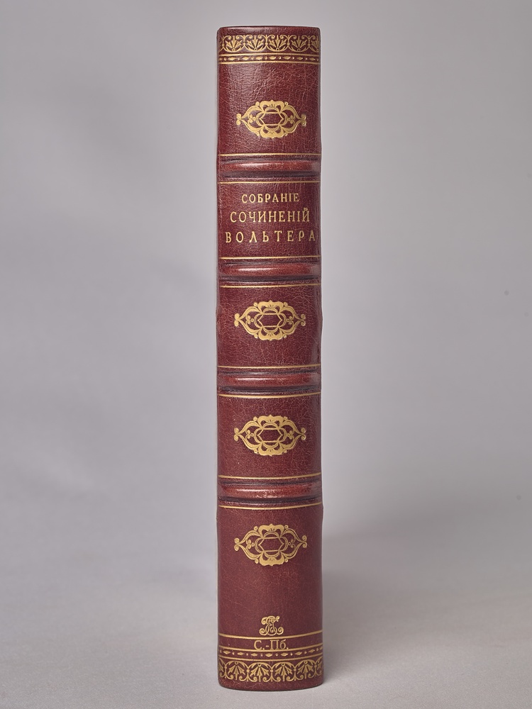 Перевод с французского М.Н. Тимофеевой, под редакцией В.В. Битнера. Со многими снимками с современных автору гравюр, портретами и каррикатурами XVIII столетия. На форзаце и титульном листе владельческий штамп-экслибрис. В полукожаном владельческом переплете. Бинтовой корешок с тиснением названия и орнамента золотом. Кожаные уголки, крышки оклеены мраморной бумагой.