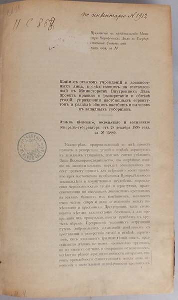 Оглавление отзывам должностных лиц и копиям постановлений по проекту Министерства Внутренних Дел о разверстании и обмене угодий, упразднении пастбищных сервитутов и разделе общих выгонов и пастбищ в западном крае: Отзывы губернаторов, Копии журналов, Отзывы уездного дворянства и т.д.