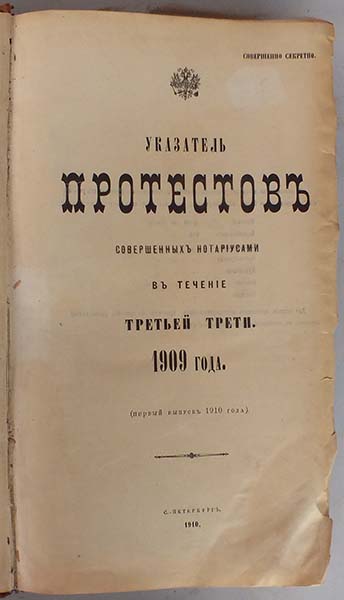 Указатель протестов, совершенных нотариусами в течение третьей трети 1909 года (Первый выпуск 1910 года) От А до Я