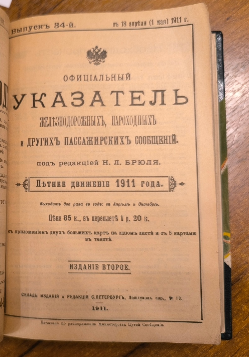 Официальный указатель железнодорожных, пароходных и других сообщений. Летнее движение 1911 года