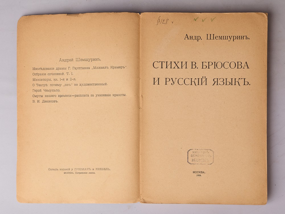 В бумажной издательской печатной обложке с небольшими повреждениями по корешку и краям. На титульном листе штамп-экслибрис личной библиотеки.