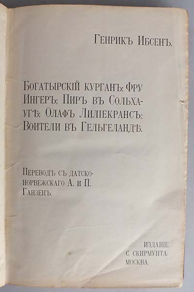 До 1917 года. Перевод с датско-норвежского А. и П. Ганзен. Небольшие замятости авантитула и титульного листа. На форзаце владельческий росчерк. На последней странице владельческая запись. Во владельческом полукожаном переплете времени издания. По корешку тиснение названия золотом. Небольшой повреждение в верхней части корешка.