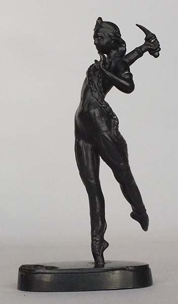 На низкой овальной подставке изображена балерина в шароварах и бюстье, с диадемой на голове. Она стоит на носке правой ноги. Левая нога отведена назад. Левая рука согнута в локте, правая рука с кинжалом поднята над головой.