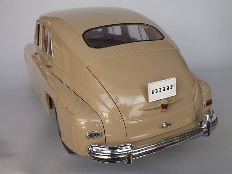 2013-2015 гг. Модель собрана по еженедельным выпускам журнала "ГАЗ-М20 Победа", издатель ДеАгостини (итальянская компания с производственными линиями в Китае, занимающаяся в том числе и моделизмом). Пластик, металл, предполагалась сборка без клея. Данная модель отличается тщательной проработкой интерьера, присутствуют мельчайшие детали. Фары, габариты, поворотники, подсветка номера и освещение багажника, тоже оборудованы светодиодной подсветкой. В представленном экземпляре отсутствуют некоторые детали (фары, бампер и т.д.)