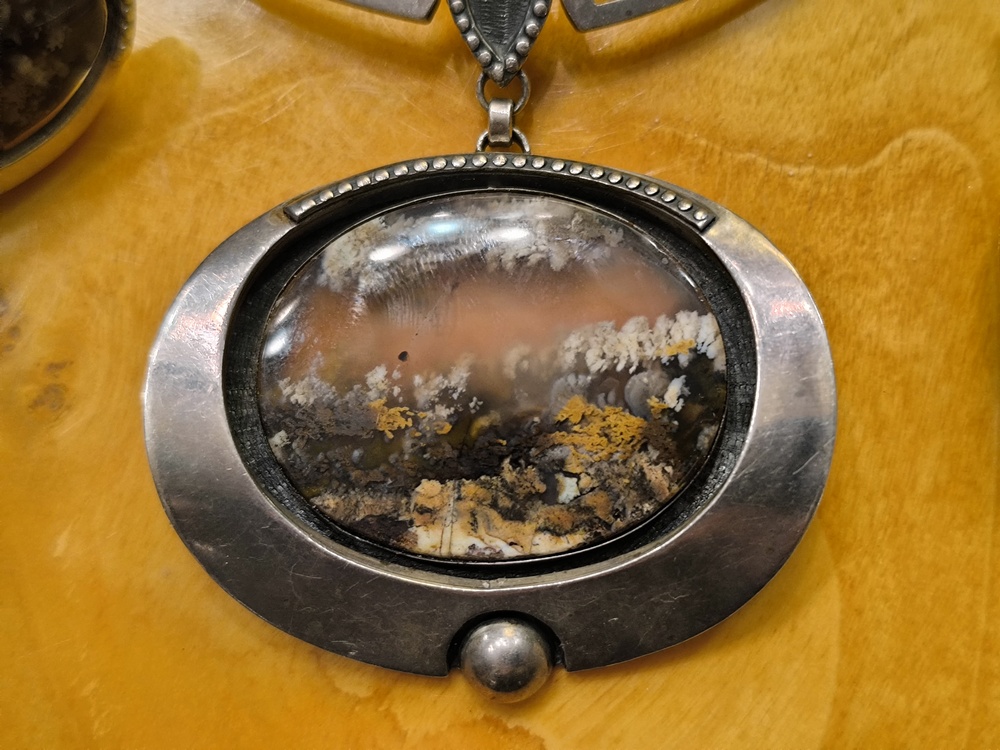 Россия. Нач. 2000-х гг. Авторская работа. Серебро (без клейма), моховой агат. Камень на подвесе имеет двухсторонний рисунок.