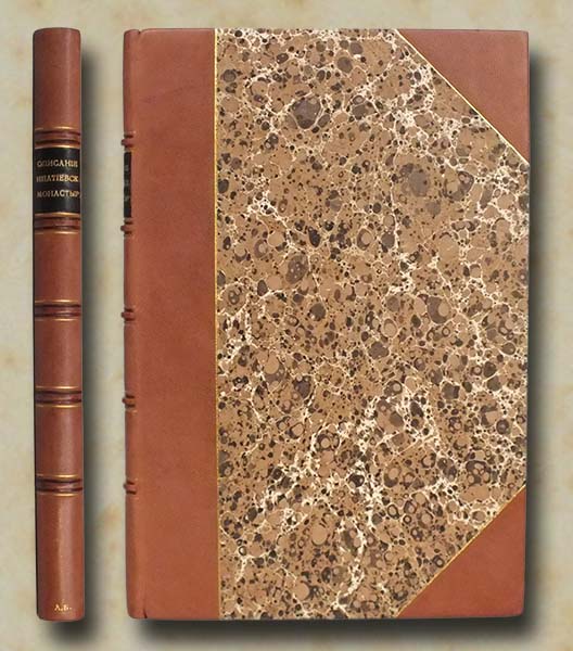 На титульном листе проставлены цифры чернильной ручкой, имеется небольшая вытертая печать. В полукожаном заказном владельческом переплете с сохранением внутри издательской бумажной графической обложки. Бинтовой корешок с тиснением названия золотом. Кожаные уголки. Крышки оклеены мраморной бумагой. Редкое издание.