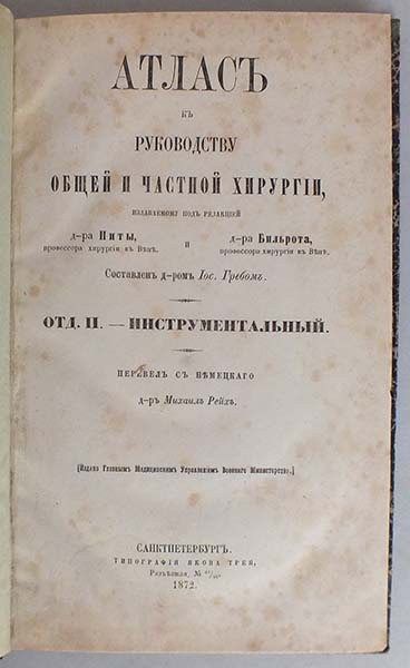 Перевл с немецкого д-р М. Рейх. На страницах временные пятна и небольшие следы от увлажнения. В полукожаном владельческом переплете времени издания. По корешку тиснение названия золотом. Повреждение в нижней части корешка. Крышки оклеены мраморной бумагой.