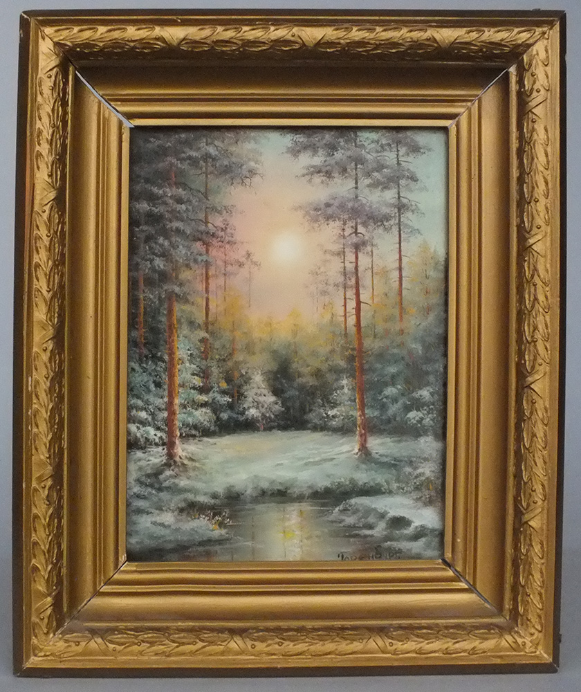 Россия. 1990-ее гг. Живопись на картоне. В нижнем павом углу подпись художника "Горенбург" В деревянной рассохшейся раме.