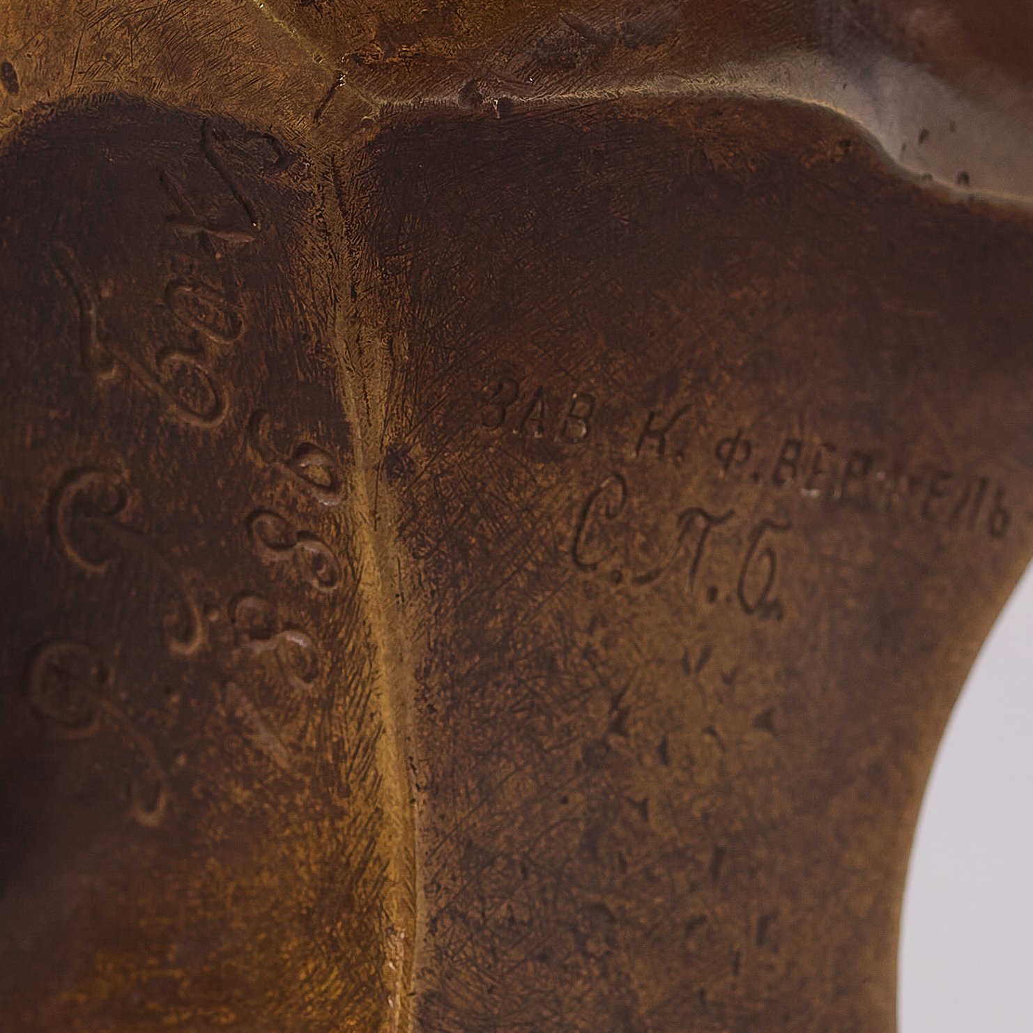 Россия. 1886 год. Бронза, художественное литье, патинирование. Сбоку подпись скульптора и год: "Р.Р.Бахъ. 1886". С оборотной стороны клеймо фабрики художественной бронзы К.Ф.Верфеля.