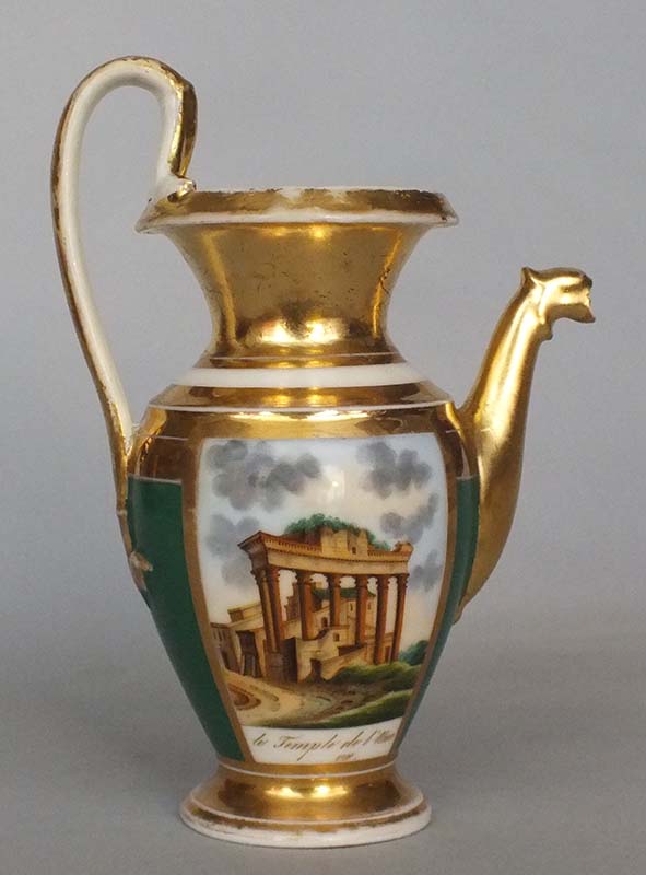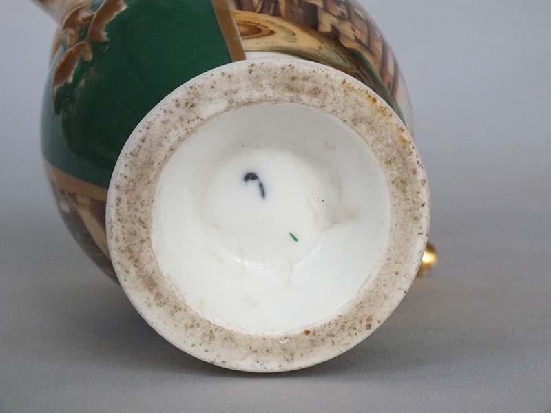 Завод Сафронова. Марка синяя подглазурная. 1810-1820 гг. Фарфор, живопись, золочение. Значительные потертости позолоты. Скол по носику. Профессиональная реставрация ручки.Редкость.