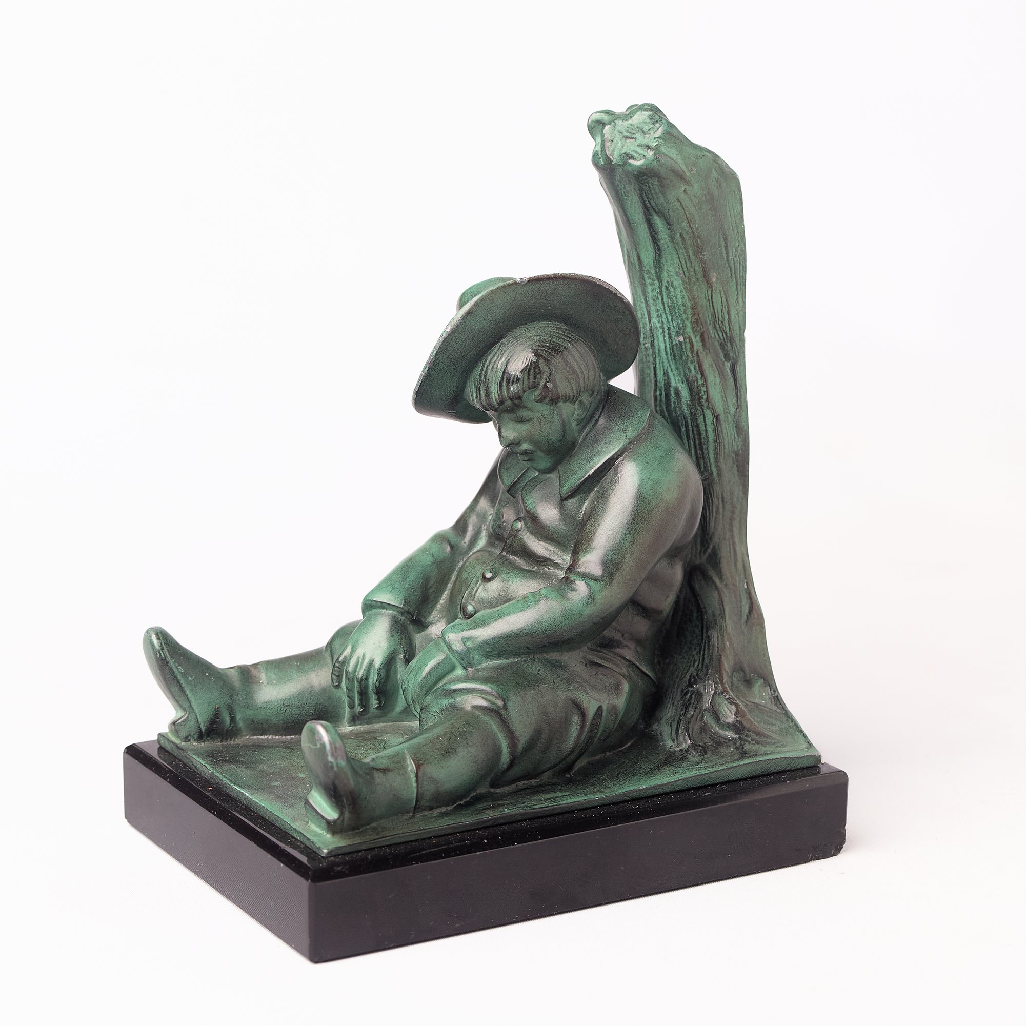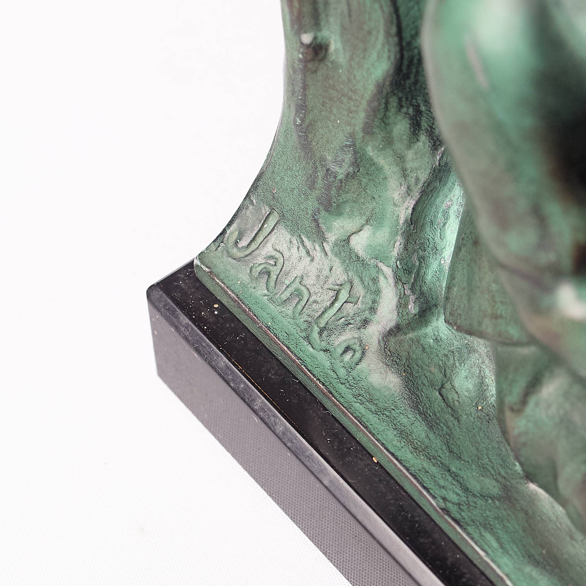Европа. Нач. ХХ века. Шпиатр, патинирование. Основание - камень. Подпись скульптора: "Janto".