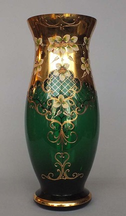 Богемия Bohemia. 1980-90-ее годы. Цветное стекло, золочение, раскрас, лепка. По краю скол - 3,2Х1,3 см. Умеренные следы бытования. Внутри следы от влаги.